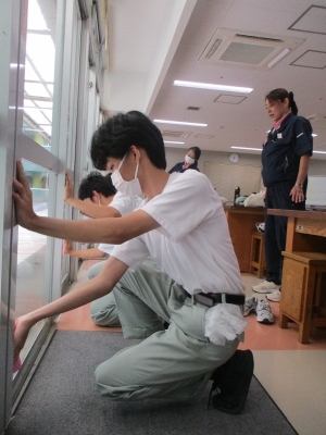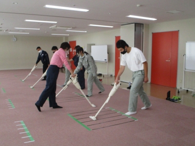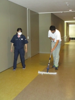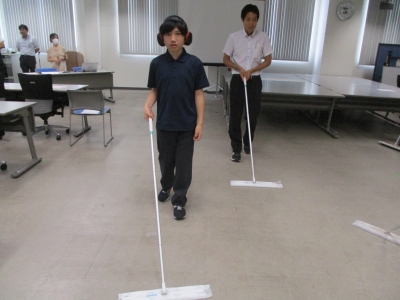 9月9日(火)、高等部1年生ビルクリーニング班の生徒が、高尾の森わくわくビレッジで就業体験を実施しました。株式会社京王シンシアスタッフ職員の方々に講師をしていただき、3つの班に分かれて、窓拭き、ダストクロス、クリーナー(掃除機)の作業を体験しました。開講式では、「(1)挨拶、(2)返事、(3)報告、(4)指示を聞く、(5)まじめに取り組む」を守ることを約束し、生徒は緊張感をもって真剣に一つ一つの指示を聞きながら取り組んでいました。また、閉校式では講師の方から働く態度についてお褒めの言葉をいただき、生徒は充実した表情をしていました。この活動を通して、生徒たちは「社会に出て働く」ことを体感し、今後の作業学習やインターンシップ等に対する意欲を高められました。最後に、本体験に御協力いただきました高尾の森わくわくビレッジ様、株式会社京王シンシアスタッフの皆様、ありがとうございました。