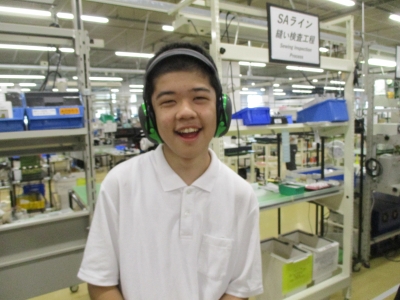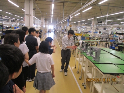 その後、ミシンが実際に作られているところを見学しました。細かい部品をほぼ手仕事で組み立てているところを見て、丁寧な作業に、生徒たちは驚いていました。