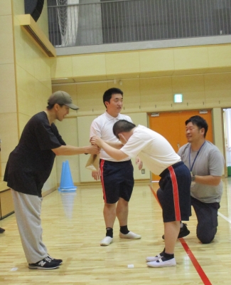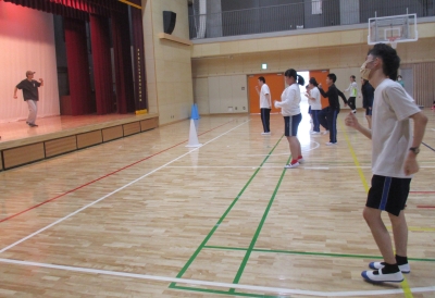 足でリズムを取り、振りを覚えて簡単な曲を仕上げました。踊り慣れているためか、HIPHOPの動きにもすぐになじみ、木谷先生の動きに合わせて大きく、楽しく踊っていました。