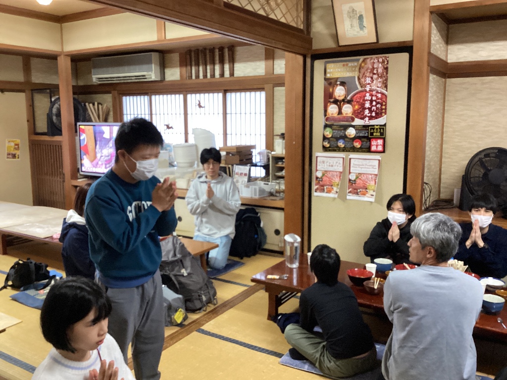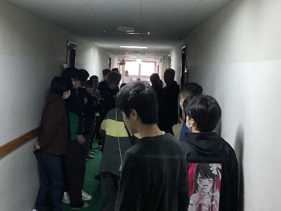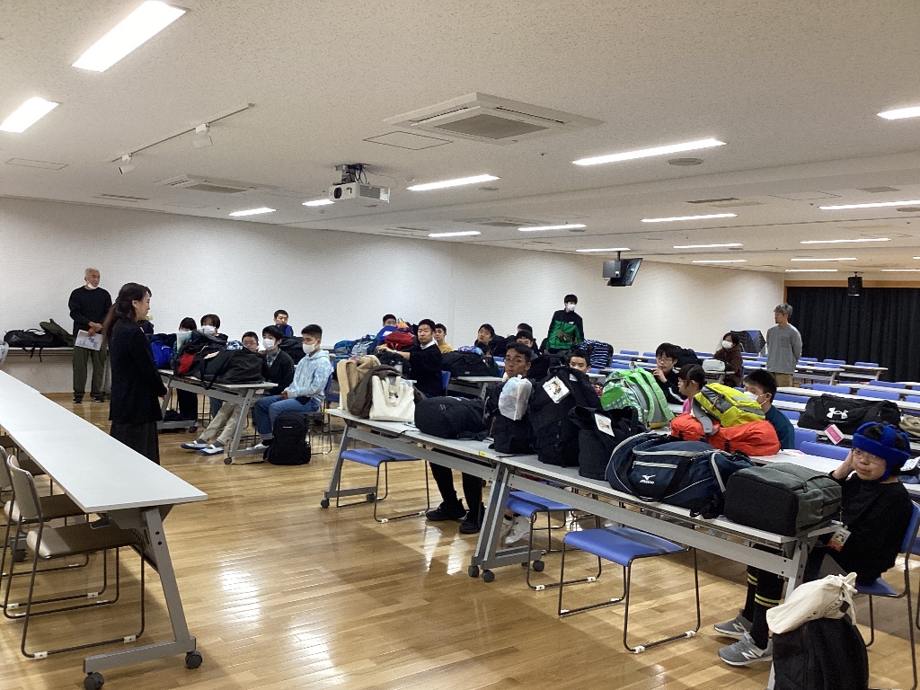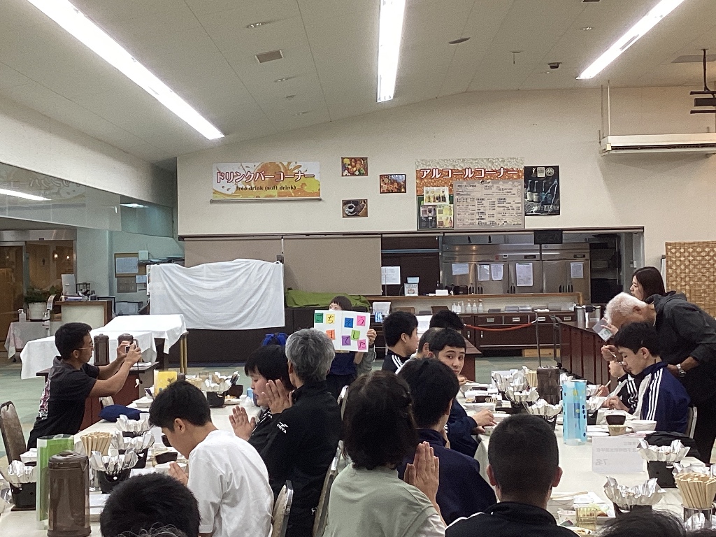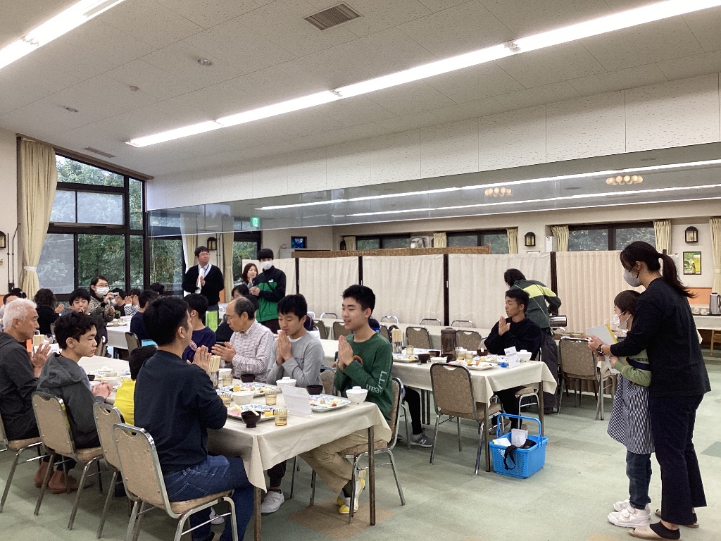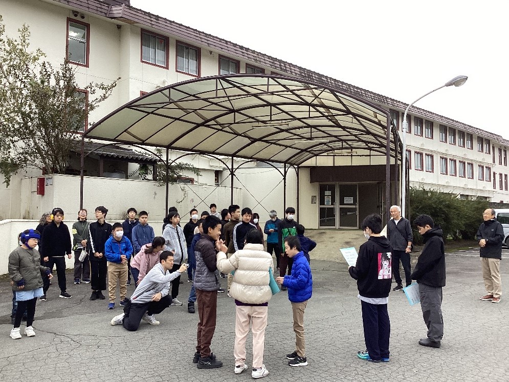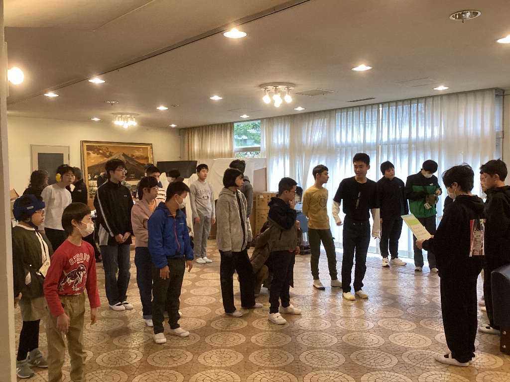 | 2025年10月22日(水) 15時20分 到着式 宿泊する「富士緑の休暇村」に着きました。 その気温は、7℃!! ロビーでは、ストーブがたかれていました。 到着式では、お世話になる宿の方に、みんなで「よろしくお願いします!」と挨拶をしました。 |