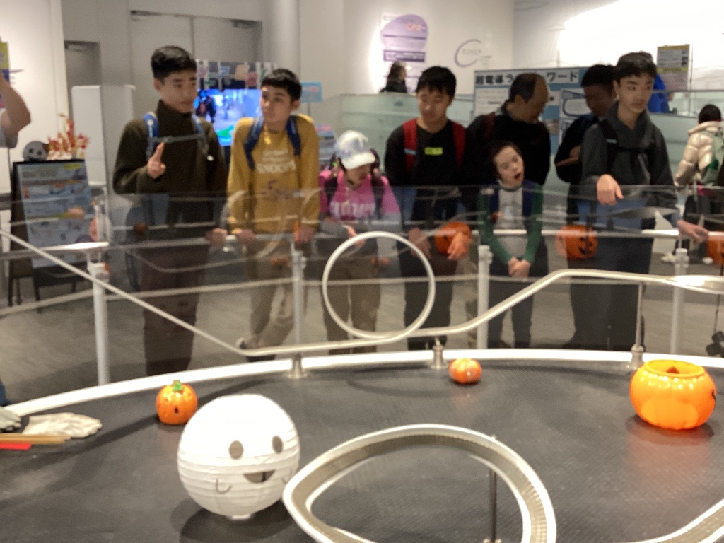 | 2025年10月22日(水) 10時45分 山梨県立リニア見学センター バスレクは静かめに進みましたが、アニメの歌♪が始まると生徒も先生も盛り上がりました。 施設に着くと、リニアのスピードを体感しました。 今日のリニアはいつもよりゆっくりだったようですが、その分何回も見ることができました。 その他、ミニリニアに乗ったり、超電導の説明を聞いたりしました。 バスの中での振り返りでは、「リニアがなんで走るのかがわかりました。」と発表がありました。 |