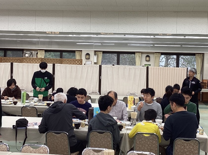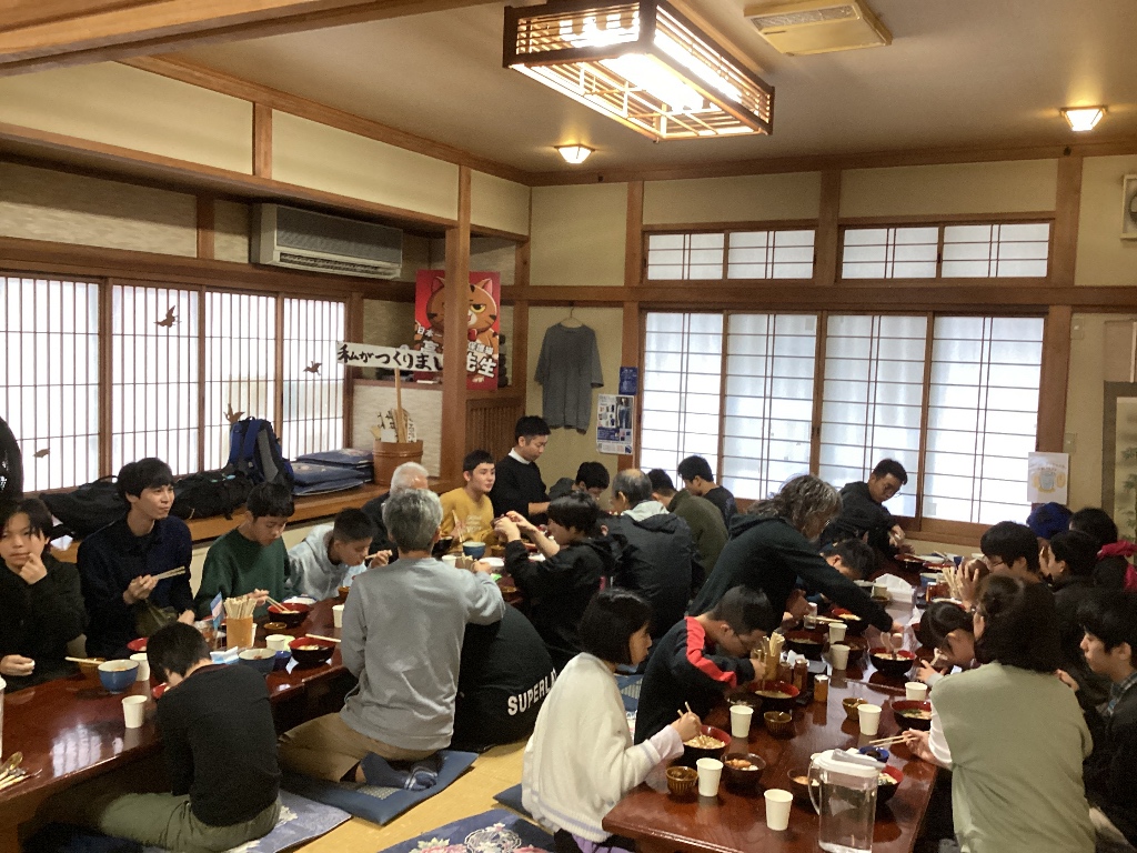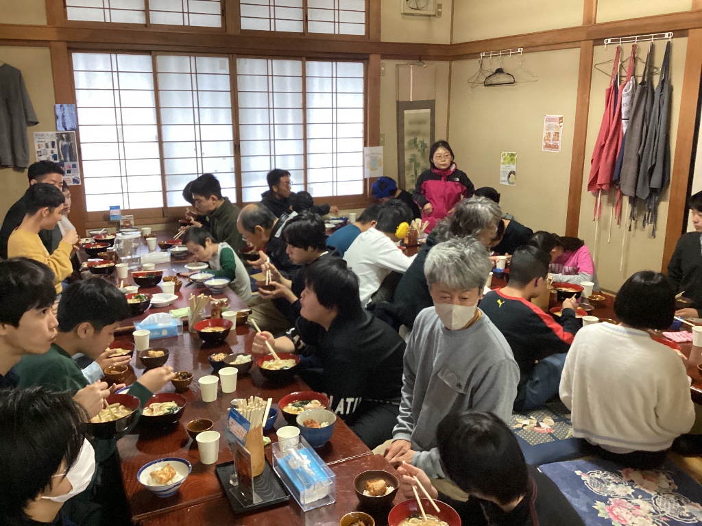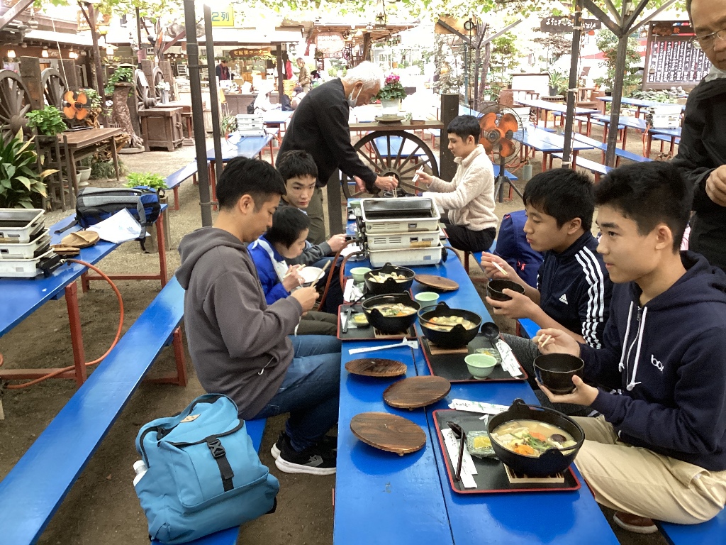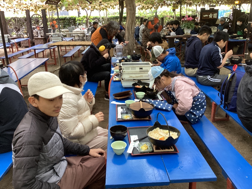 | 2025年10月22日(水) 13時00分 1日目 昼食 富士屋 昼食場所「富士屋」に到着しました。 座敷に上がって、名物の吉田うどんをいただきました。 雨の中、バスからお店までの少しの移動も寒かったので、温かいうどんがうれしかったです。 とり天のミニ天丼が付いていました。「どちらが美味しかったですか?」の質問には、 吉田うどんを選んだ生徒が多かったです。 通信環境が悪く、更新が遅くなってしまい申し訳ございません。 |