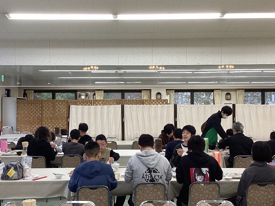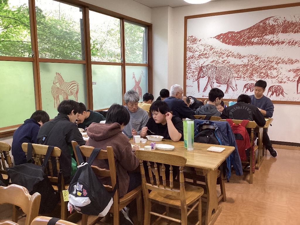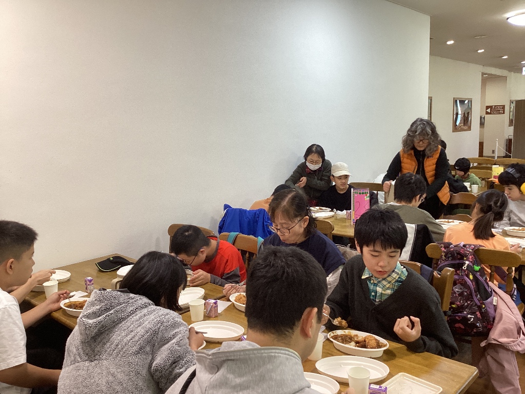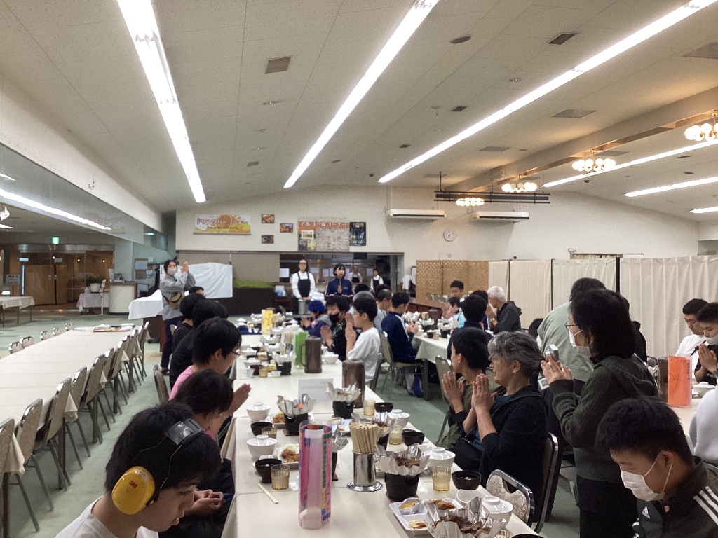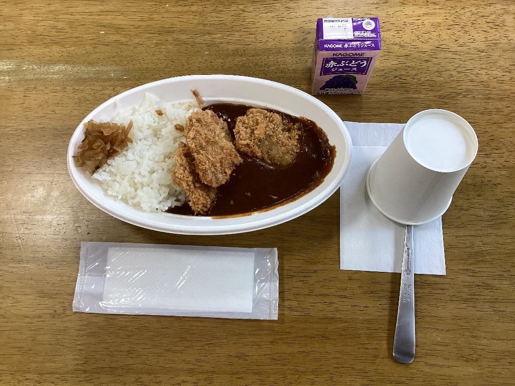 | 2025年10月23日(木) 12時10分 2日目 昼食 たくさん歩いた後は、お待ちかね昼食のカツカレーです。 少し辛口でしたが、みんなが大好きなメニューで、食べっぷりもよかったです。 |