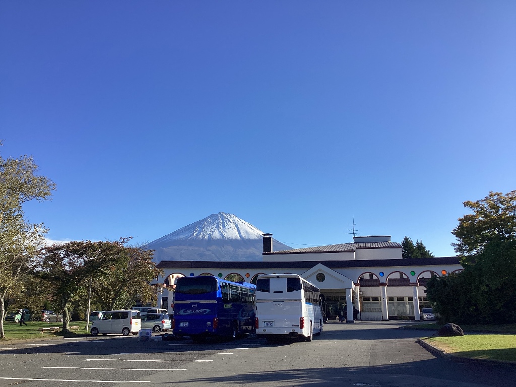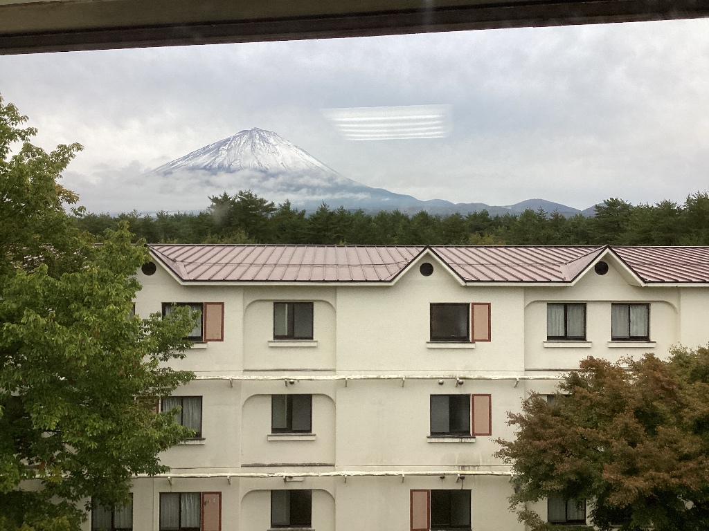 | 2025年10月23日(木) 7時00分 2日目 朝の会 おはようございます。 昨日の寒さで初冠雪した富士山の姿が現れました。 7時からロビーで予定の確認とラジオ体操をした後、富士山を見に外に出ました。 深呼吸をして、おいしい空気をたっぷり吸って、さわやかな気持ちになりました。 |