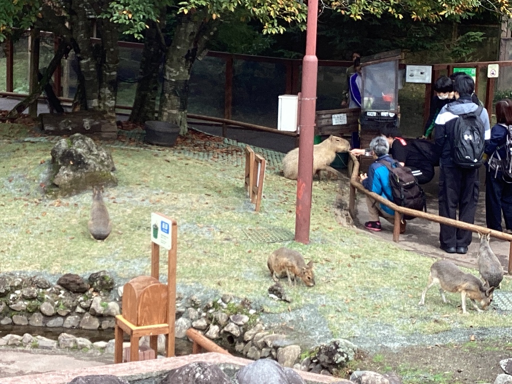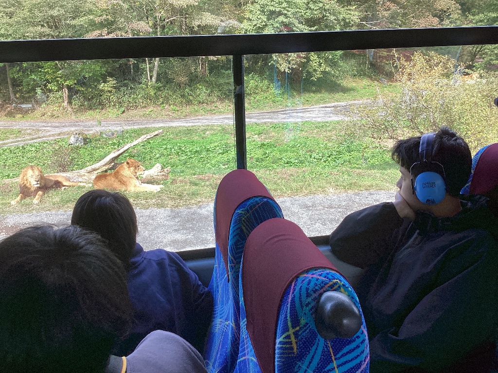 | 2025年10月23日(木) 11時00分 富士サファリパーク ふれあいゾーン 宿を出発したバスの中では、 ♪ホントにホントにホントにホントに ライオンだぁ~♪のフレーズが流れ、気分が盛り上がりました。 サファリパークでは、くっきりと富士山が見え、いくぶん空気が冷たい中、ふれあいゾーンを散策しました。 餌をあげたり、スタンプラリーのやったり、たくさんの動物を見て、1時間半たっぷり活動しました。 |