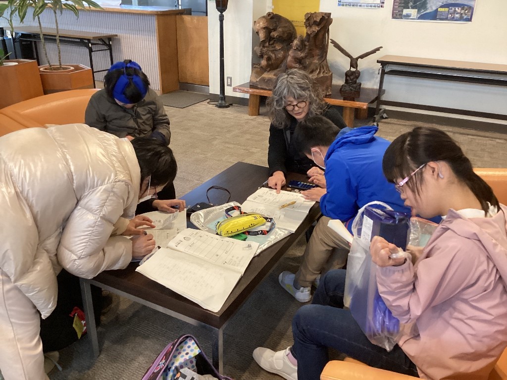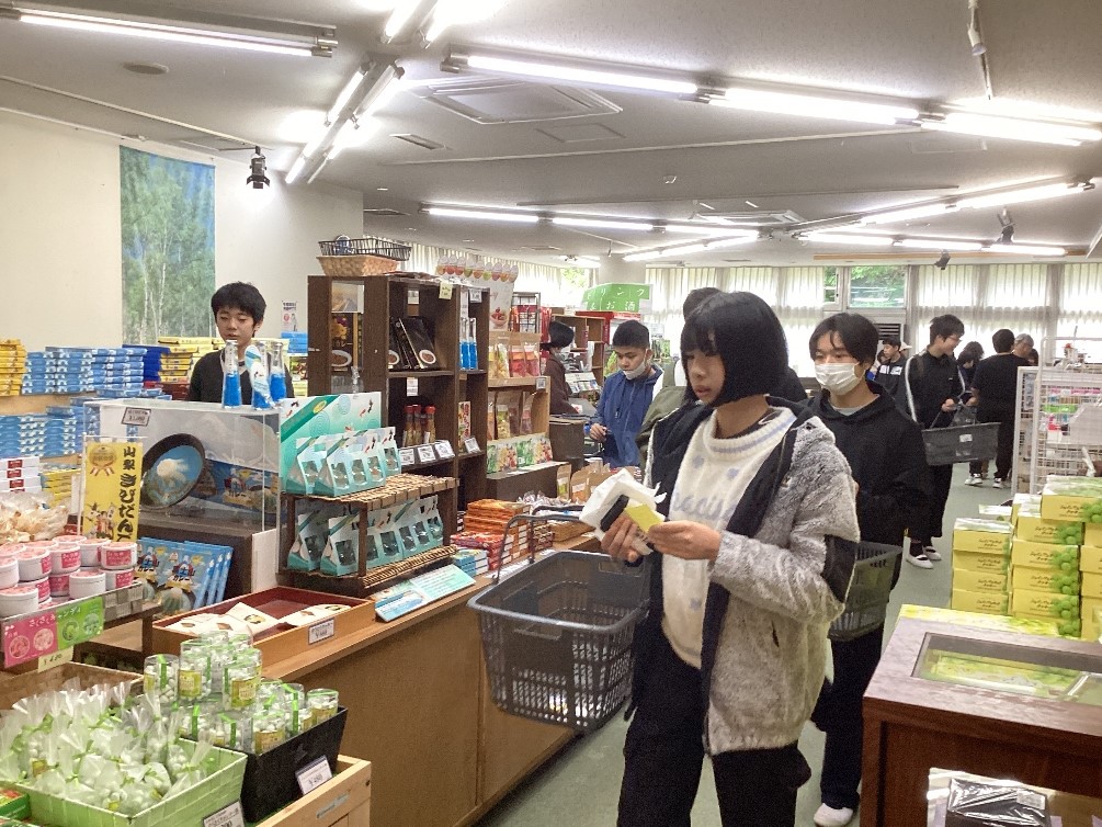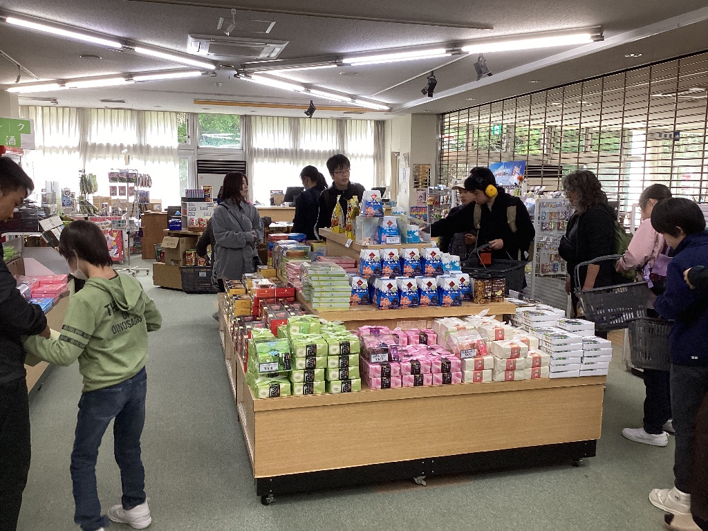 | 2025年10月24日(金) 10時00分 買い物 食後は比較的ゆっくり過ごし、身支度や荷物整理を終え、宿の売店でお土産購入タイムです。 甲州ワインビーフ味のポテトや富士山のマスコット、ほうとう、チョコレート、山梨の果物のお菓子…、 2000円のお小遣いの中で買えるかどうか、電卓を片手に選びました。 購入後はしおりに記入し、計算とお釣りがあっているのかを確認しました。 |