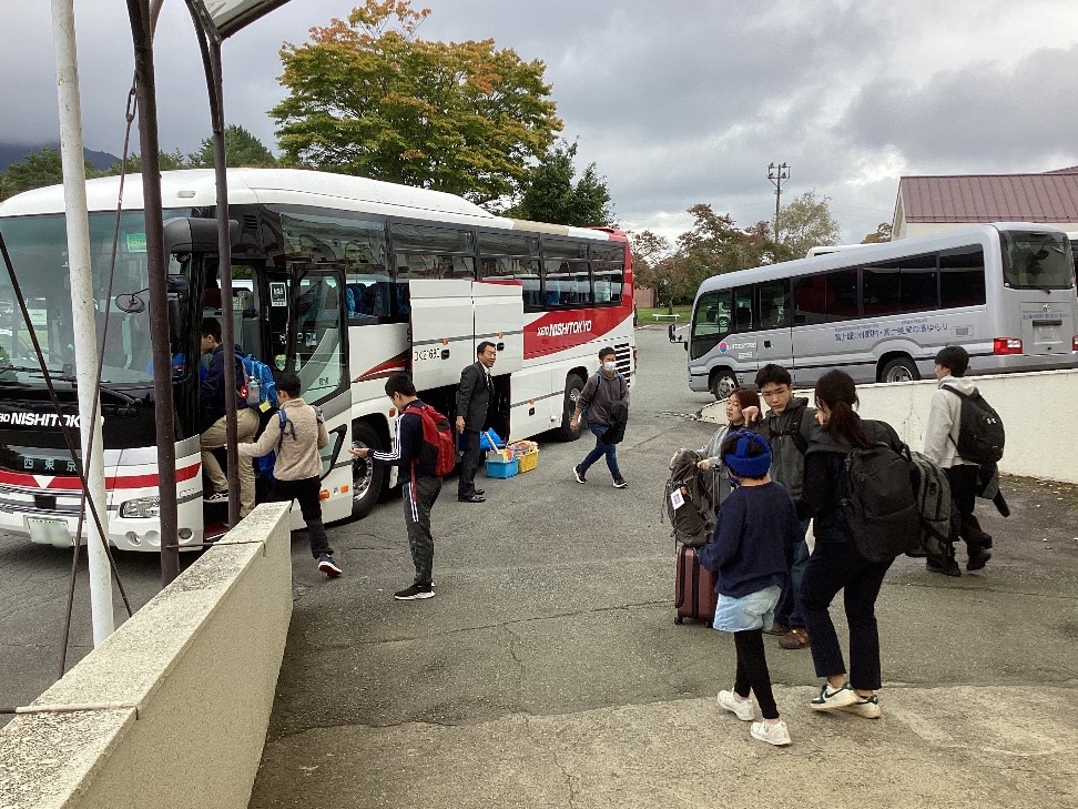 | 2025年10月24日(金) 11時00分 閉所式 閉所式をして、富士緑の休暇村を後にします。 三日間お世話になった宿の方に、「温泉が気持ちよかったです。ご飯がおいしかったです。」と感想をお伝えし、みんなでお礼を言いました。 乗り込んだバスの中では移動教室の歌が流れ、今までで一番のみんなの歌声が聞こえました。 |