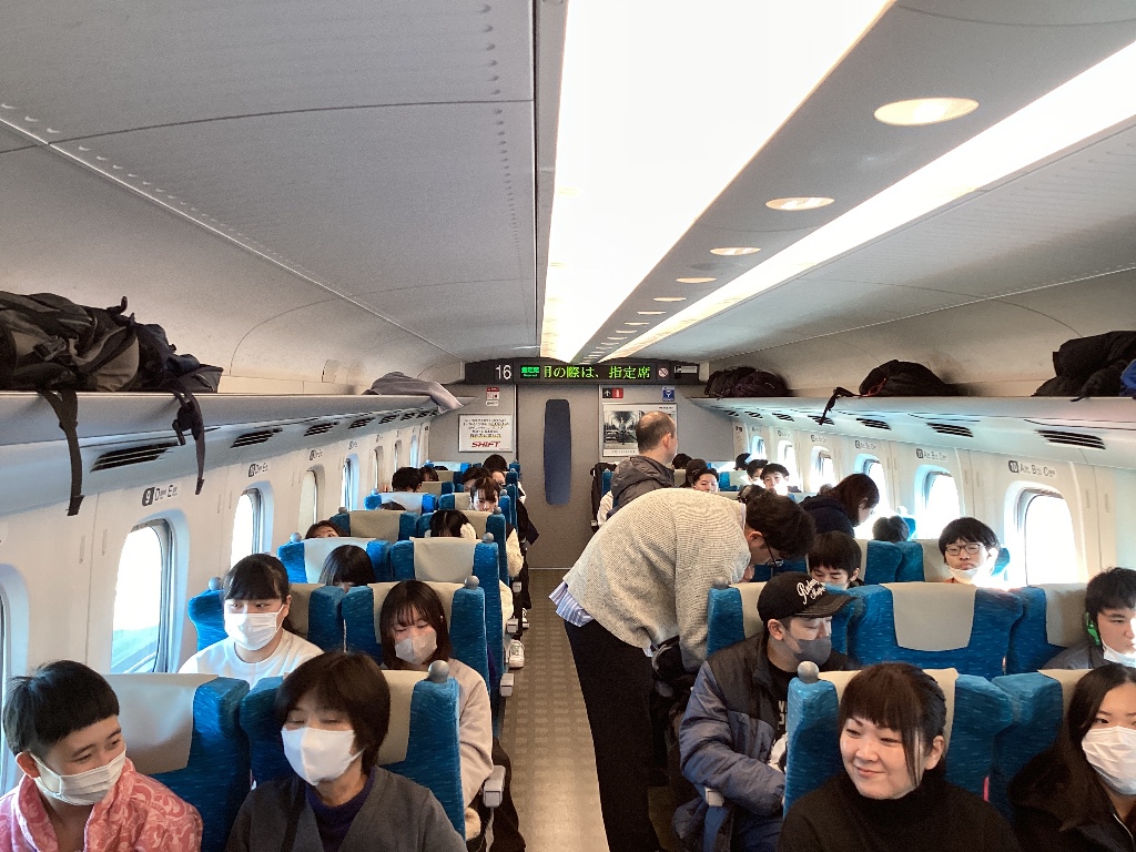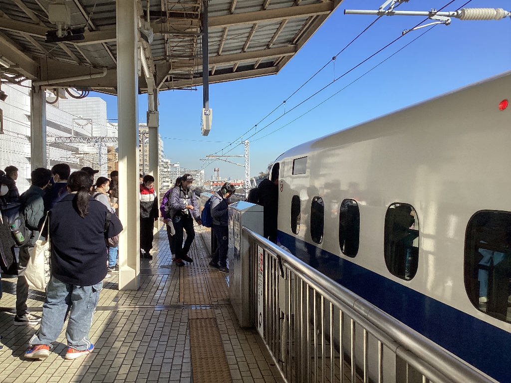 新大阪 12時15分発、のぞみ232号に全員乗車し、新横浜へ向け出発しました。