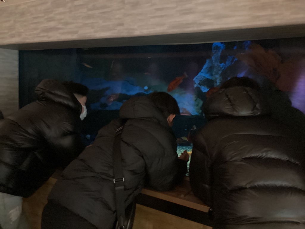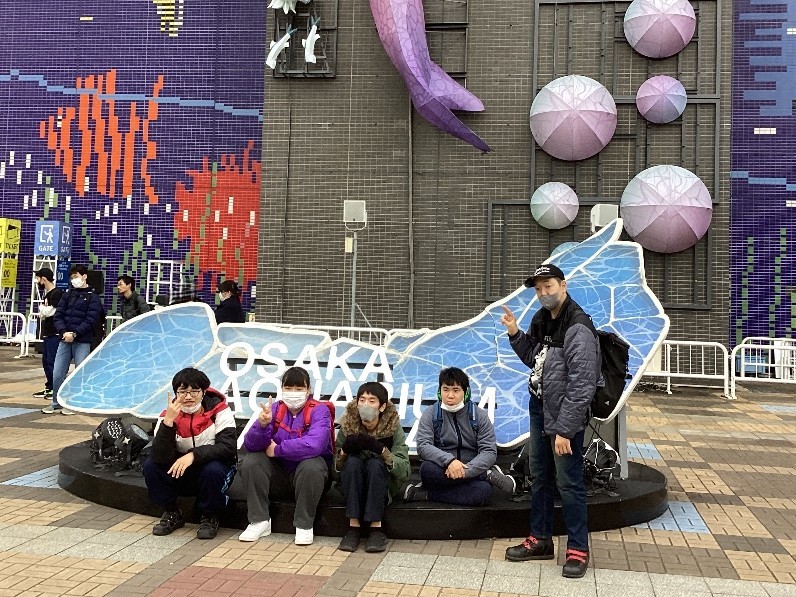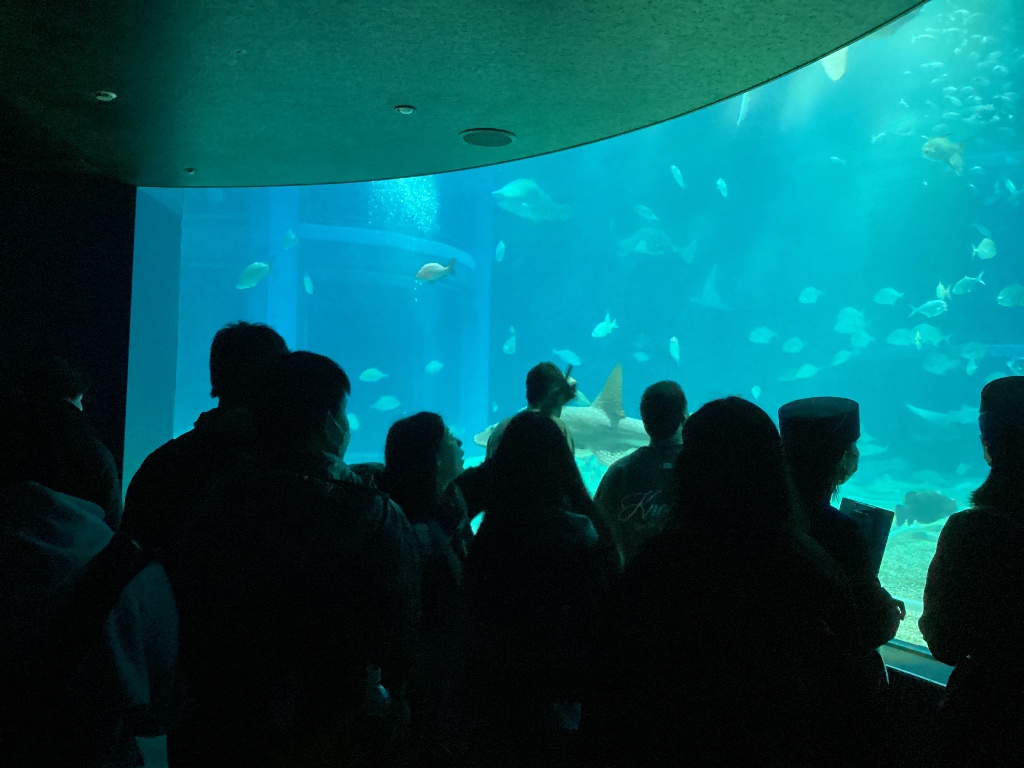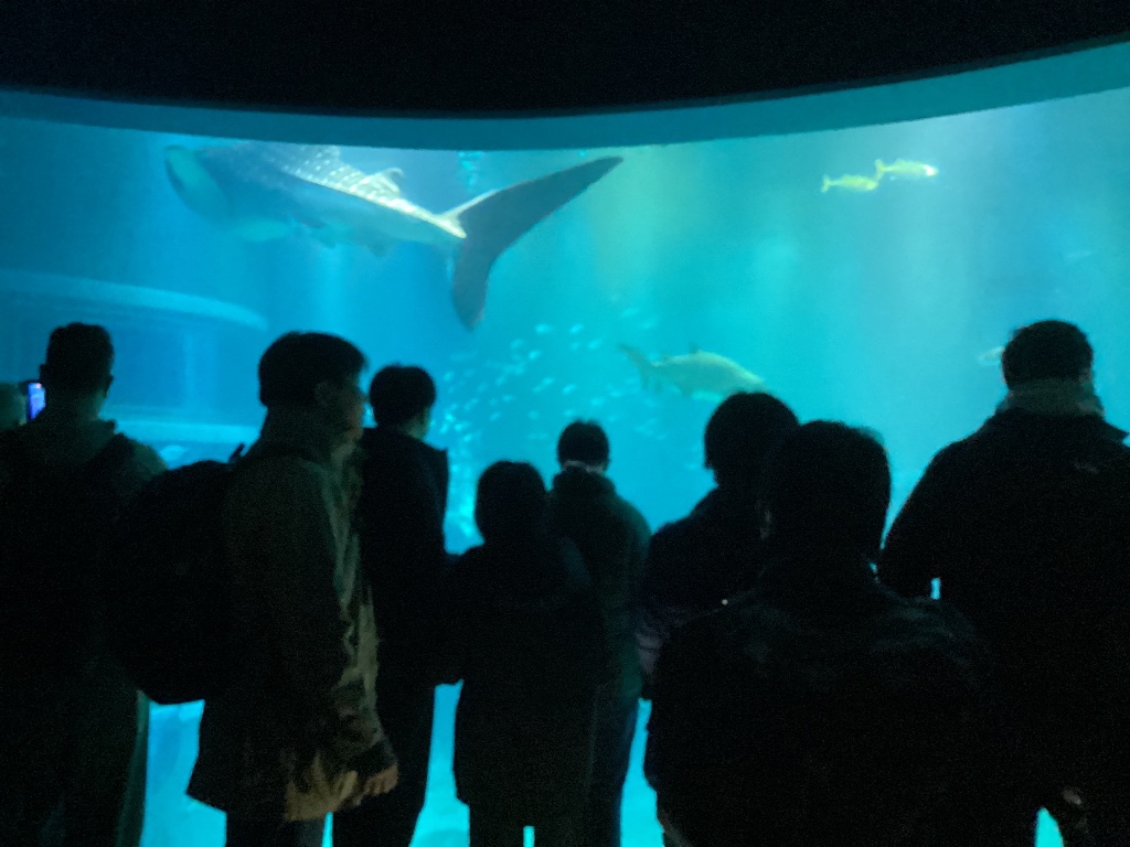 海遊館に到着しました。1時間弱でしたが、ジンベイザメやクラゲ、アザラシ、エイなど、