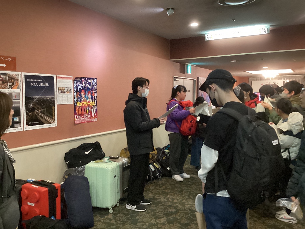 「今日一日怪我なく過ごして、大阪を楽しんで帰ってください」と温かい言葉をいただきました。 みんなで感謝の気持ちを込めて挨拶をして、ホテルリュウセイを後にしました。 |