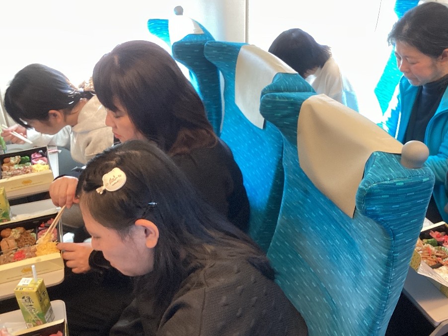 車内では、お弁当タイムです。 |
